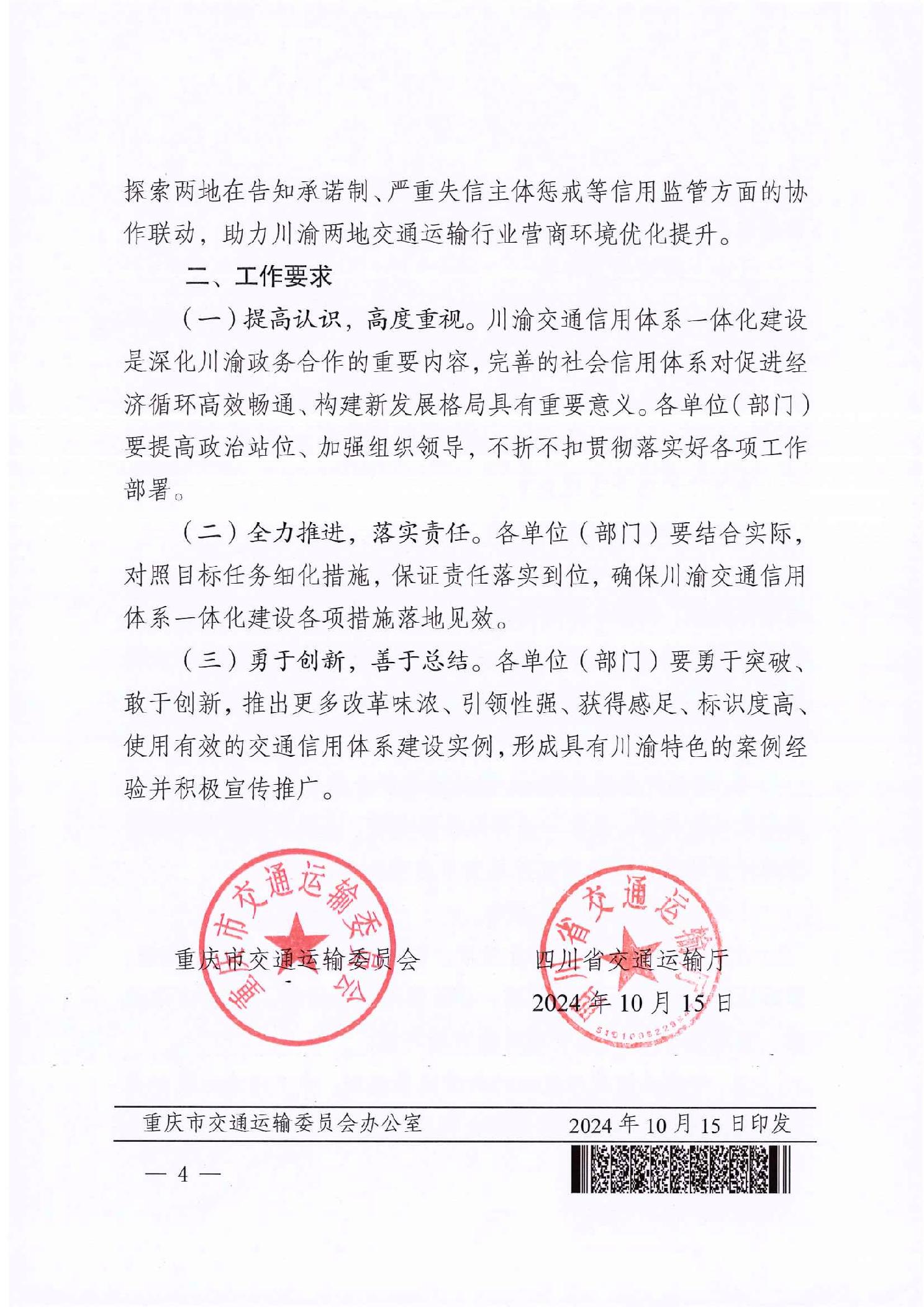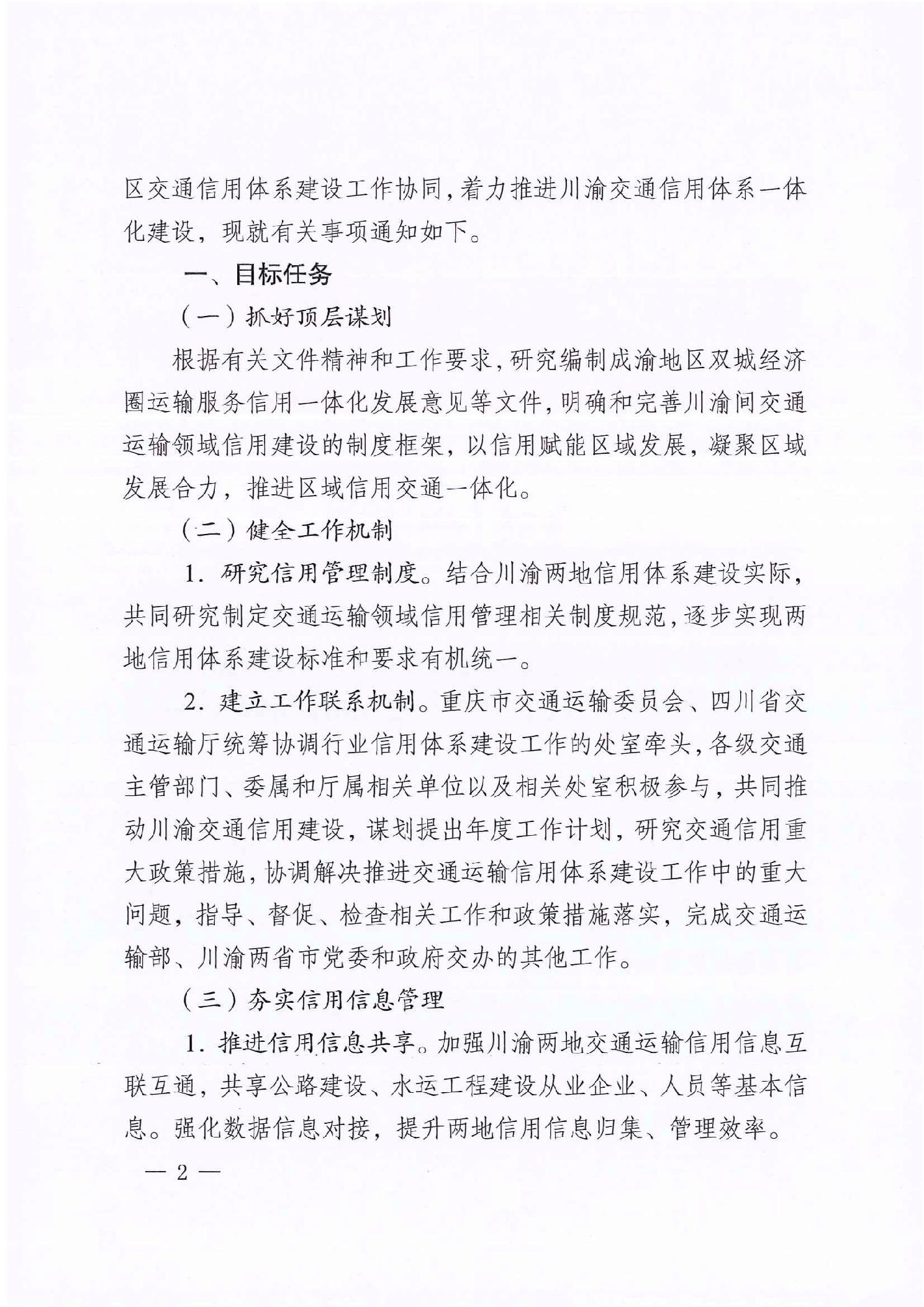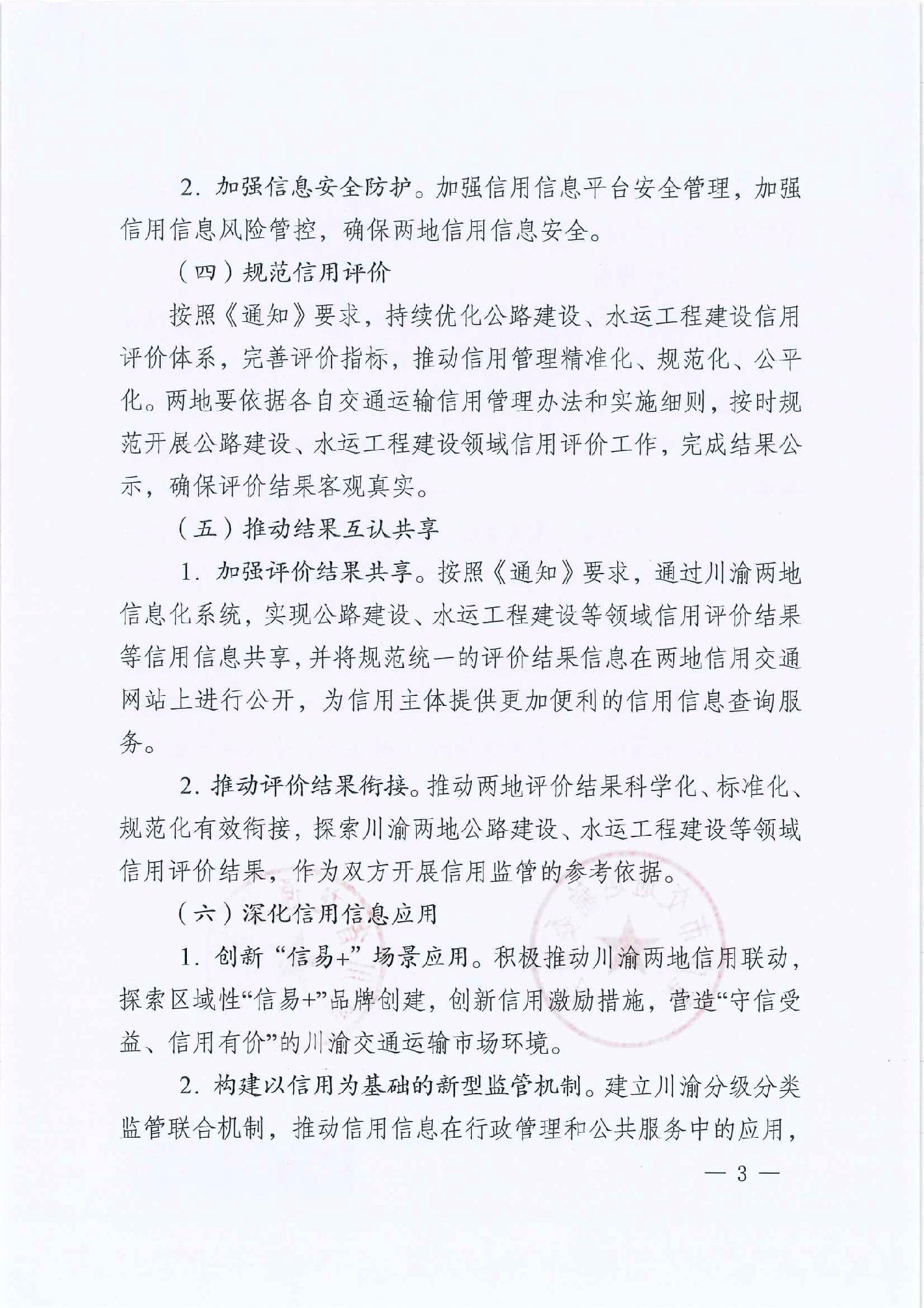 重慶市交通運輸委員會 四川省交通運輸廳關于加強川渝交通信用體系建設協同聯動的通知">