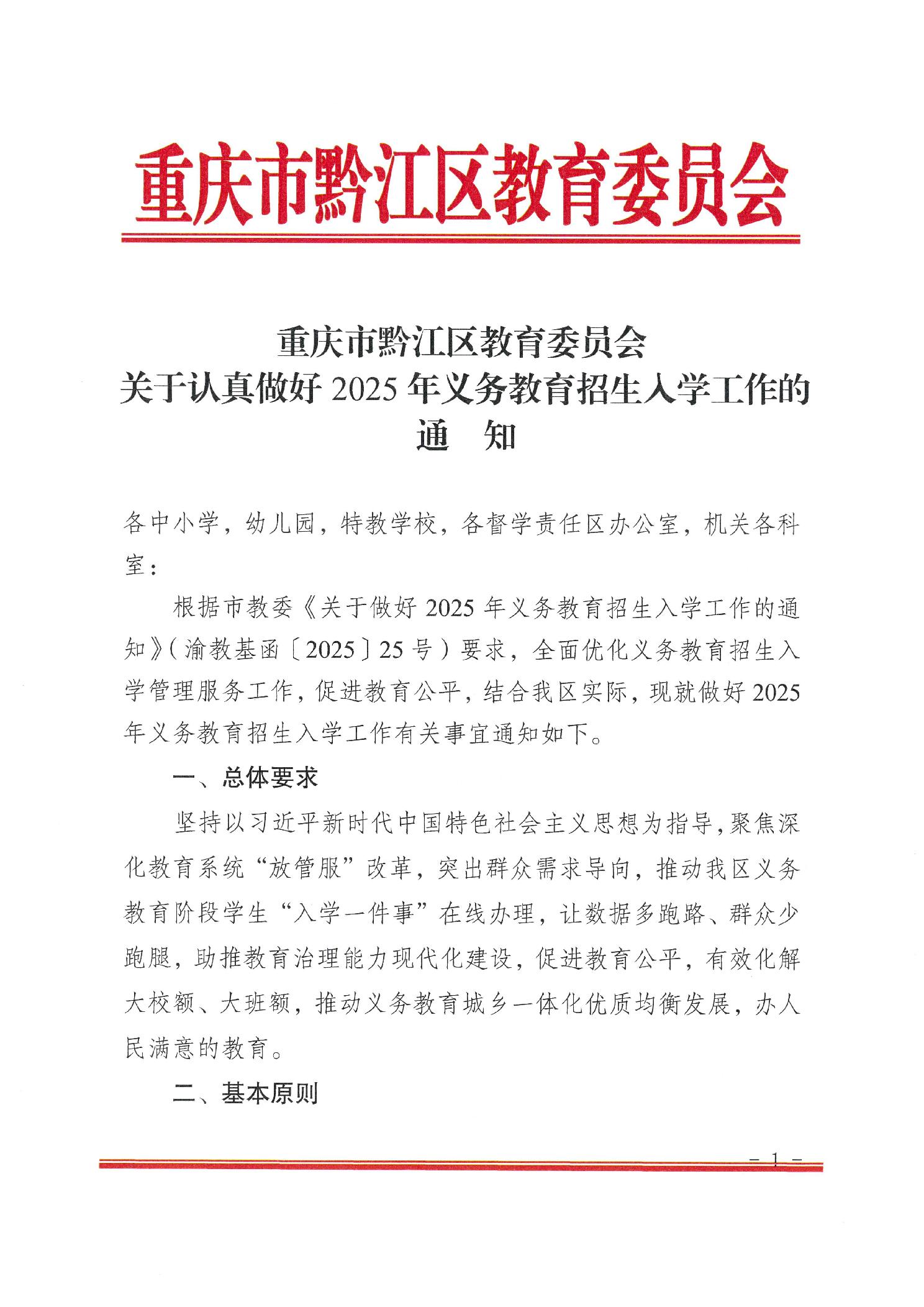 重慶市黔江區(qū)教育委員會關于認真做好2025年義務教育招生入學工作的通知">
