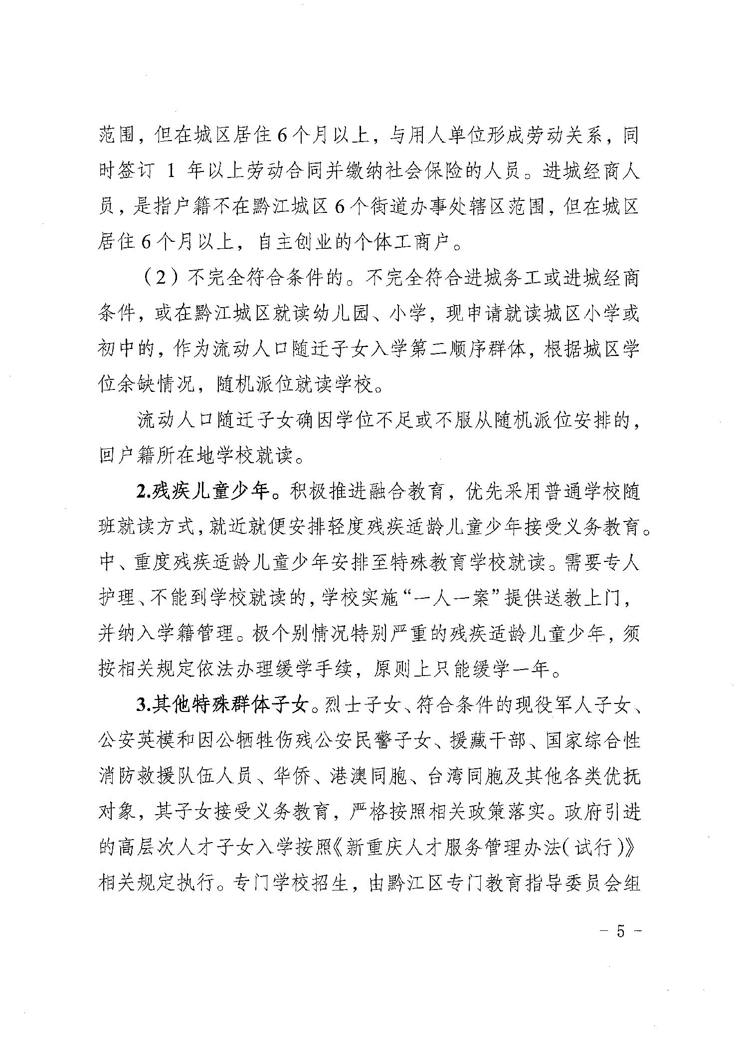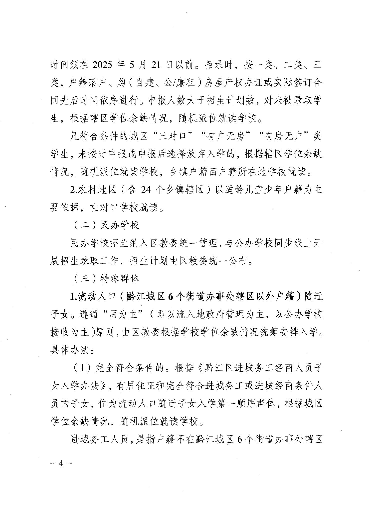 重慶市黔江區(qū)教育委員會關于認真做好2025年義務教育招生入學工作的通知