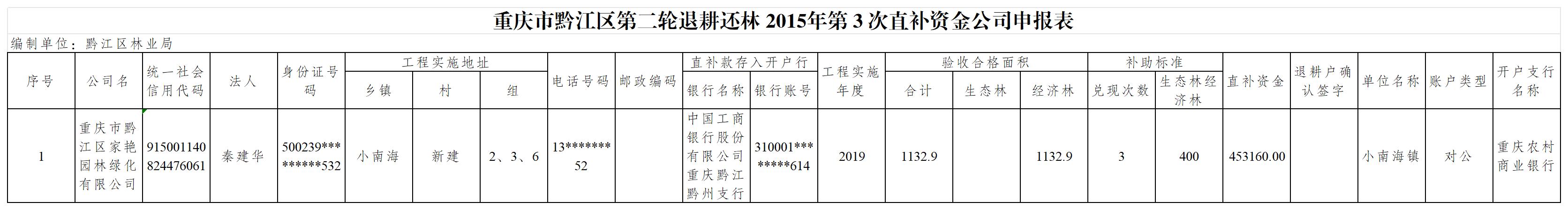 重慶市黔江區(qū)林業(yè)局2025年第二輪退耕還林10月直補資金兌付情況公示(小南海鎮(zhèn)新建村)