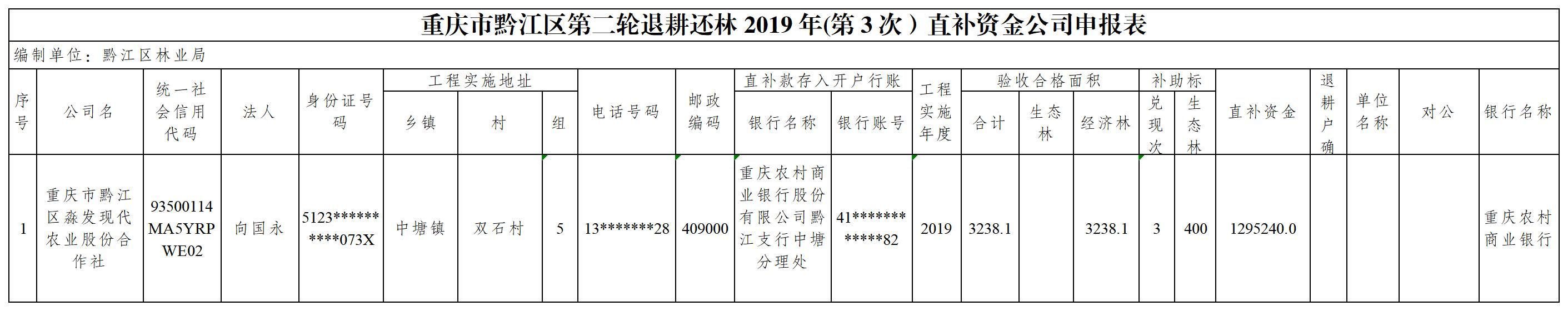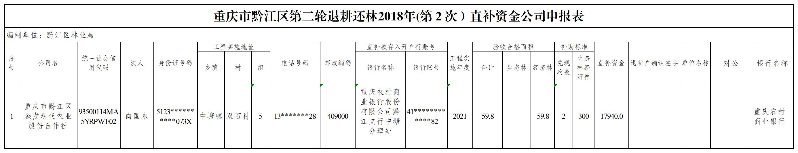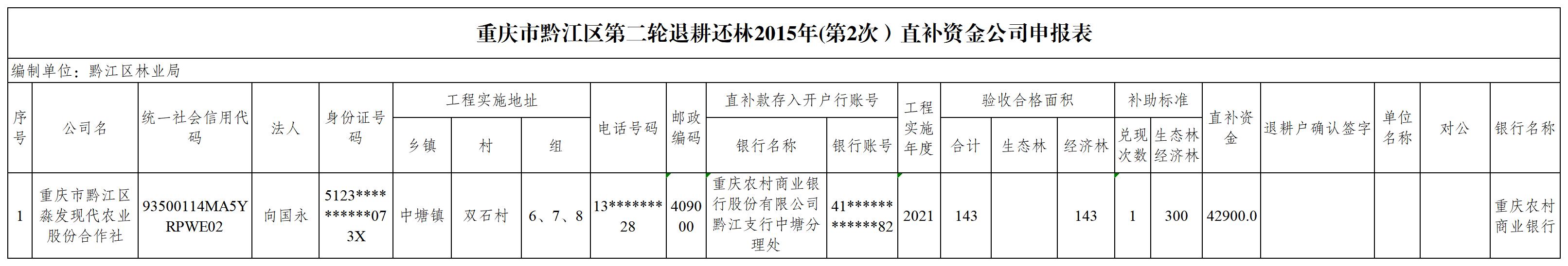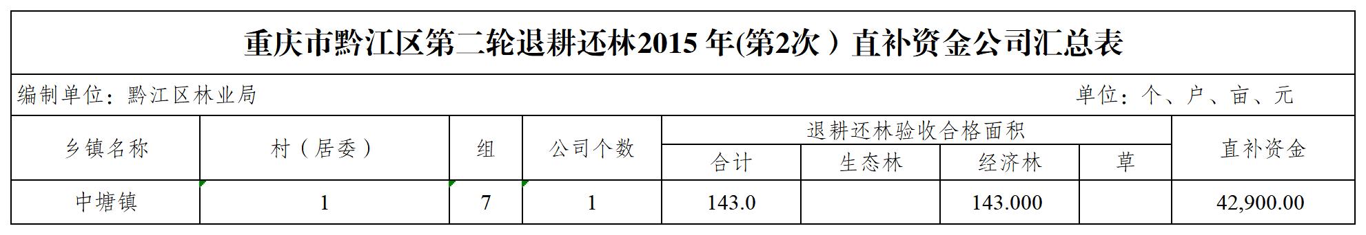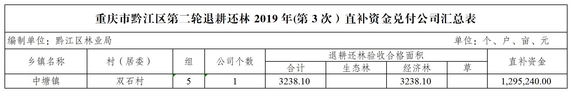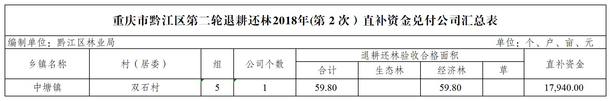 重慶市黔江區(qū)林業(yè)局2025年第二輪退耕還林12月直補資金兌付情況公示(中塘鎮(zhèn))