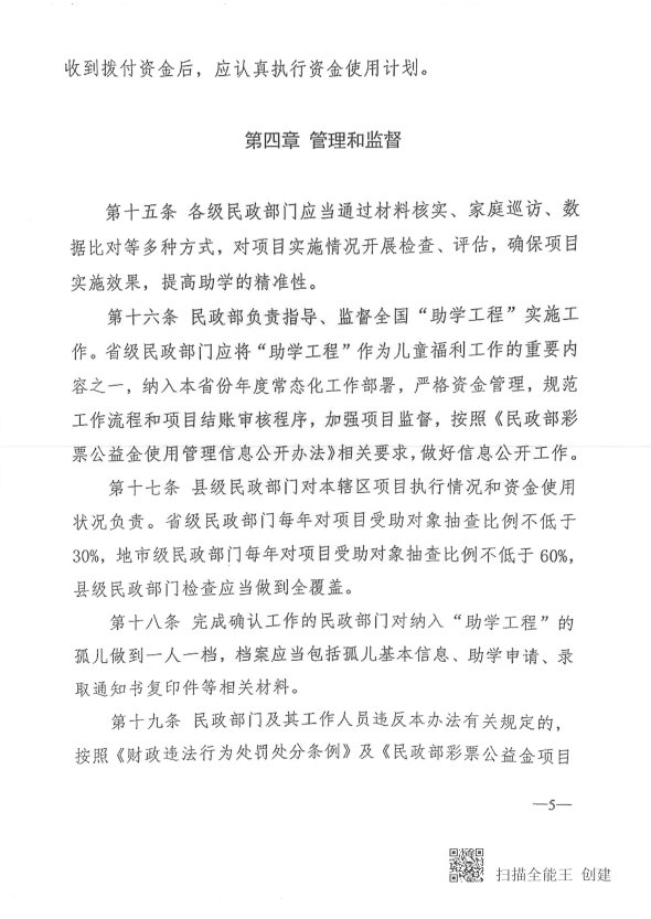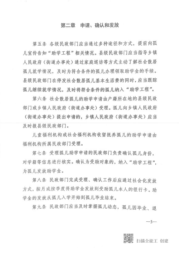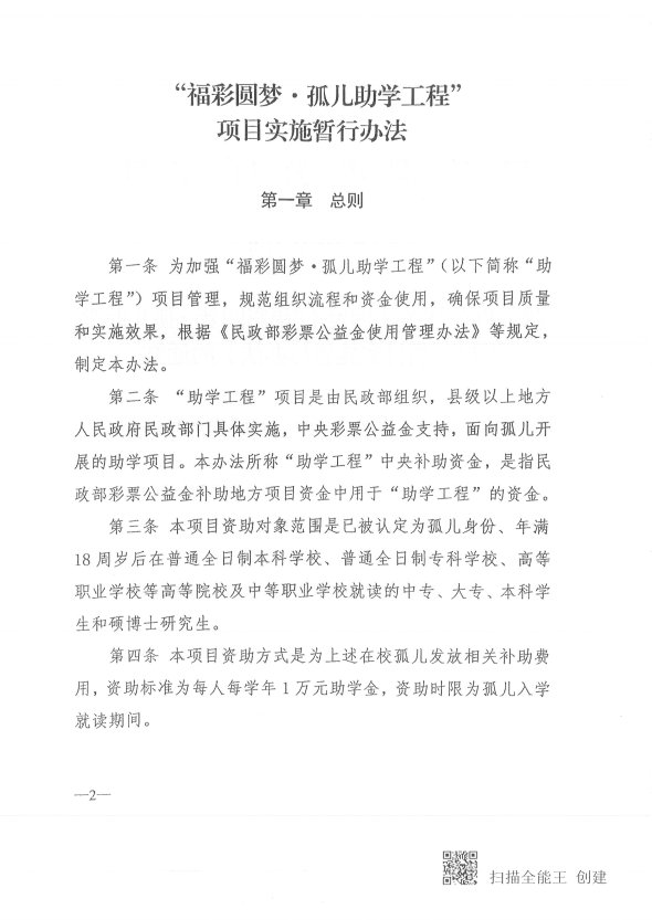 從2019年7月10日起,民政部實施的“福彩圓夢·孤兒助學工程”項目,是進一步健全孤兒保障制度,維護孤兒受教育權(quán)利的重要舉措。各區(qū)縣(自治縣)要高度重視,認真組織實施。要利用互聯(lián)網(wǎng)、媒體等平臺,大力宣傳《“福彩圓夢·孤兒助學工程”項目實施暫行辦法》(以下簡稱《暫行辦法》),做到家喻戶曉。