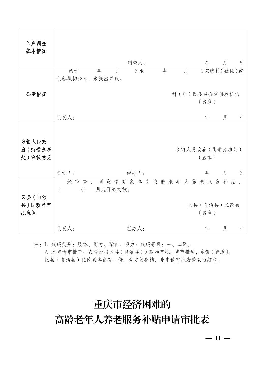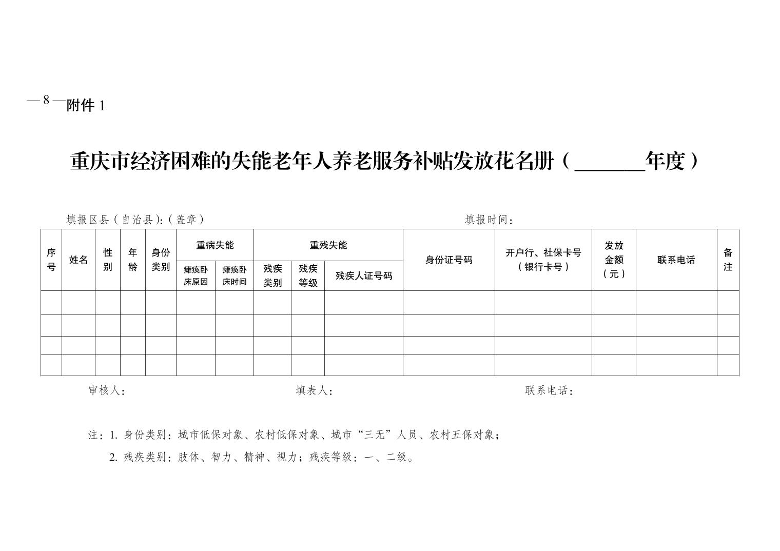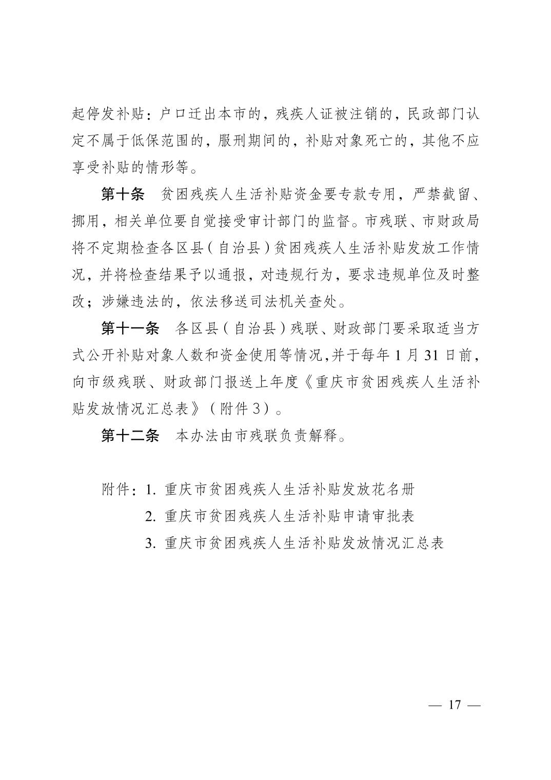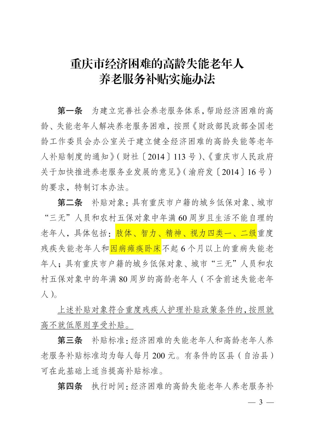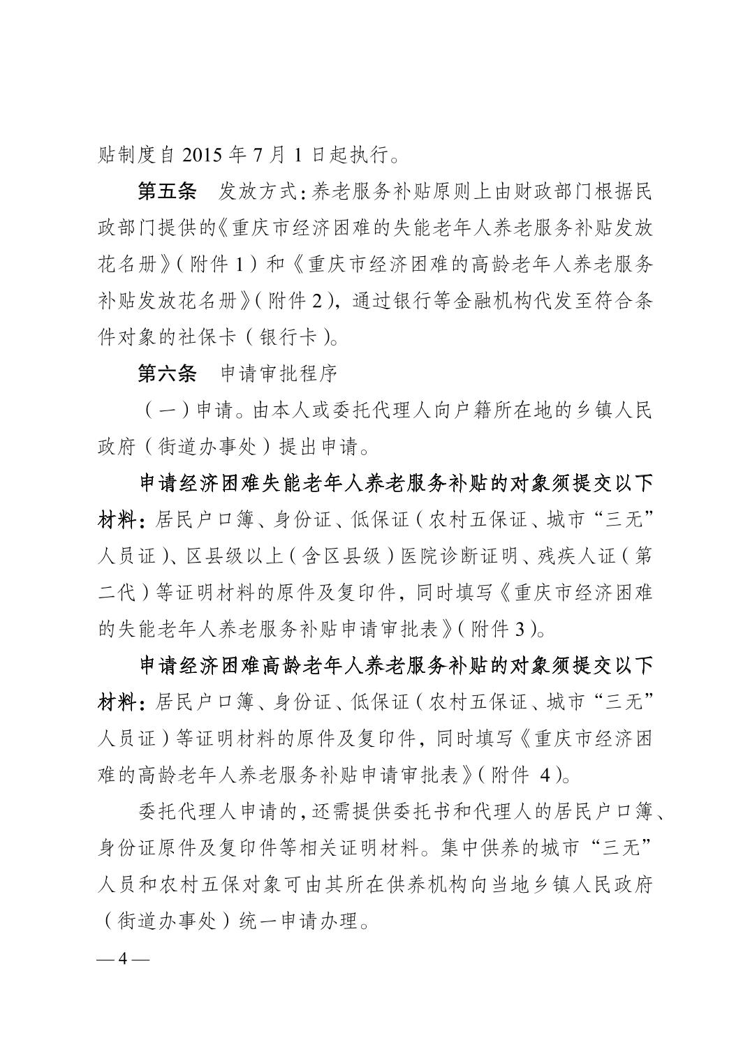 關(guān)于印發(fā)《重慶市經(jīng)濟(jì)困難的高齡失能老年人養(yǎng)老服務(wù)補(bǔ)貼實(shí)施辦法》《重慶市貧困殘疾人生活補(bǔ)貼實(shí)施辦法》《重慶市重度殘疾人護(hù)理補(bǔ)貼實(shí)施辦法》的通知(渝民發(fā)〔2015〕71號(hào))