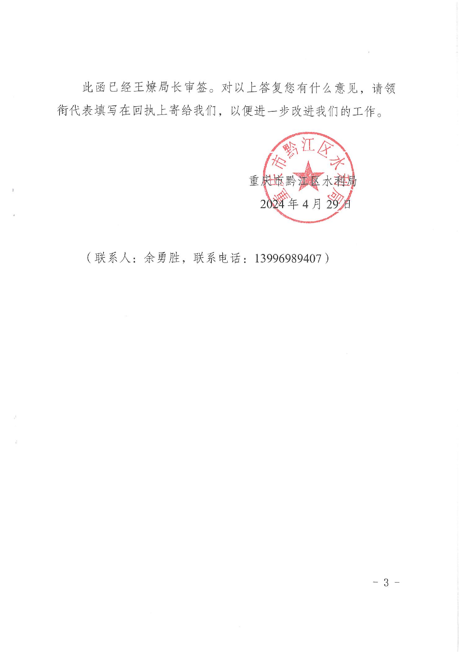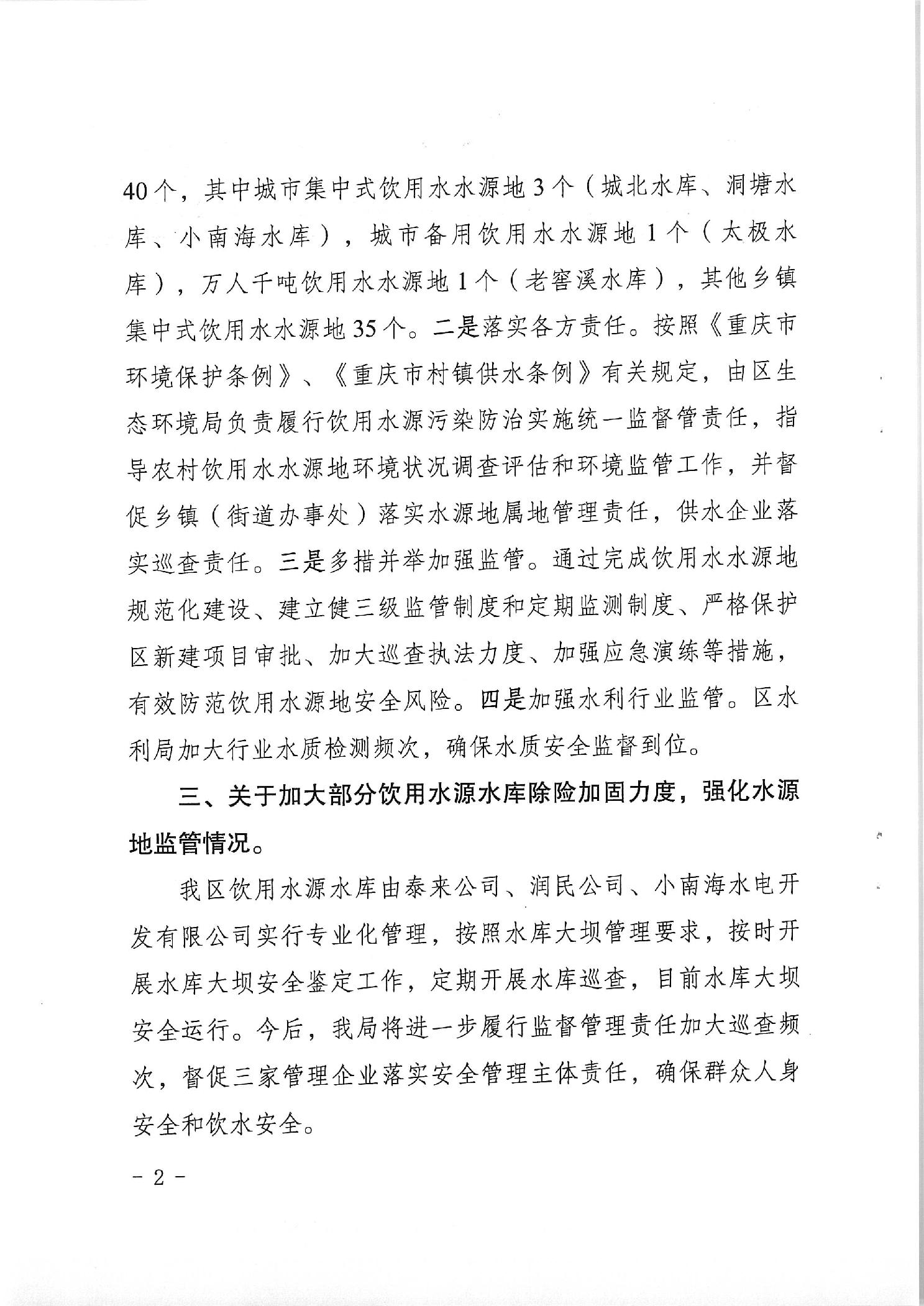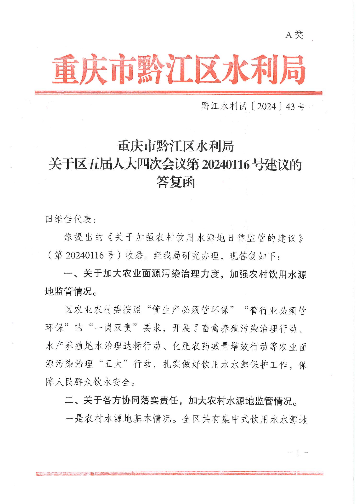 重慶市黔江區(qū)水利局關(guān)于區(qū)五屆人大四次會(huì)議第116號(hào)建議的答復(fù)函