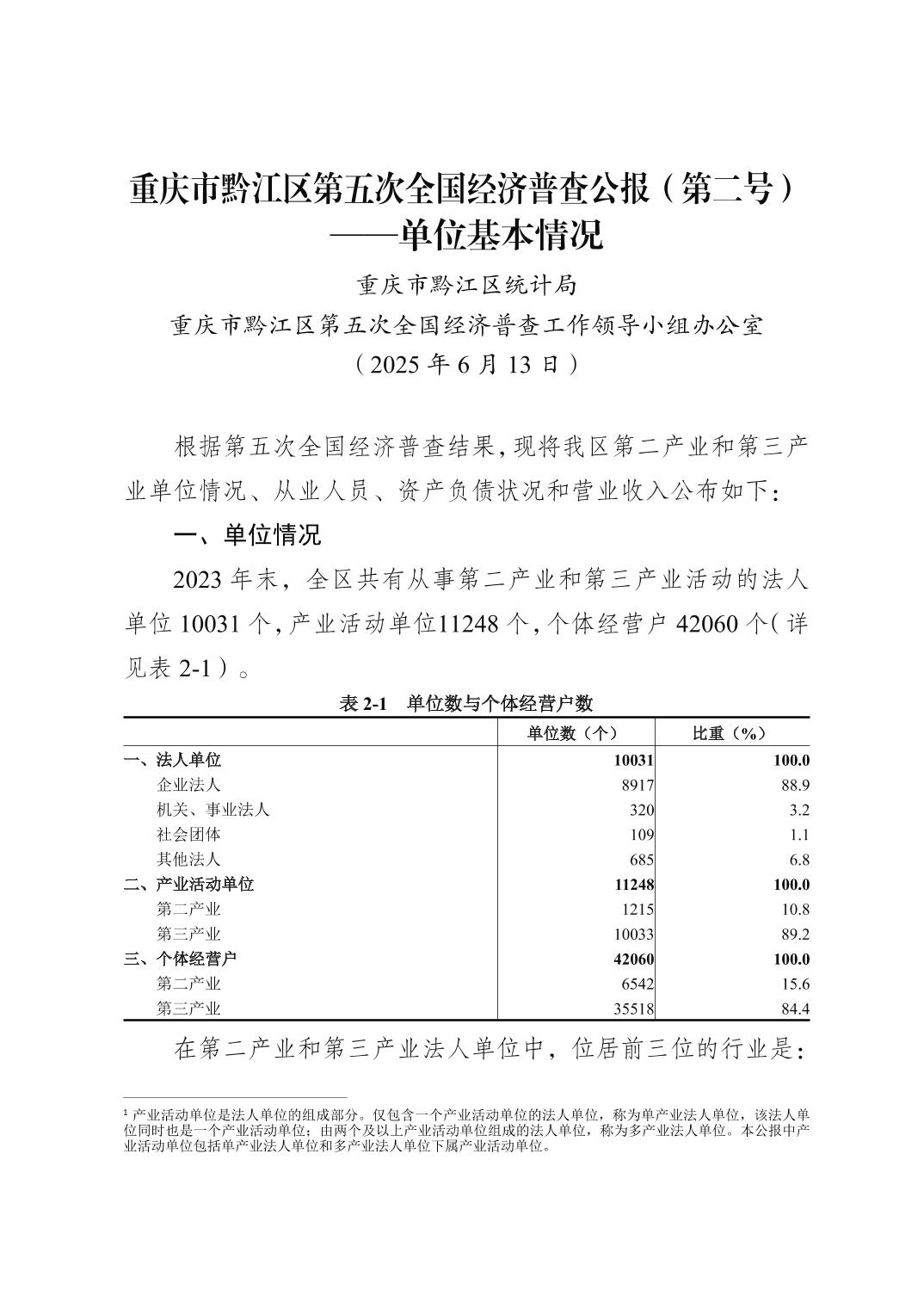重慶市黔江區(qū)第五次全國經(jīng)濟普查公報(第二號)