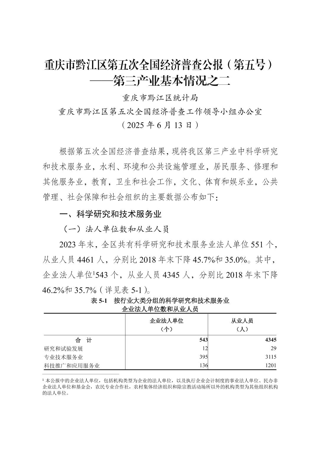重慶市黔江區第五次全國經濟普查公報(第五號)">