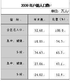 年末全區(qū)戶籍總?cè)丝?2.68萬(wàn)人,比上年增加0.51 萬(wàn)人。全區(qū)常住人口43.86萬(wàn)人,城鎮(zhèn)化率達(dá)到 34.27%,比上年提高1.72個(gè)百分點(diǎn)。全區(qū)人口自然增長(zhǎng)率為5.14‰。