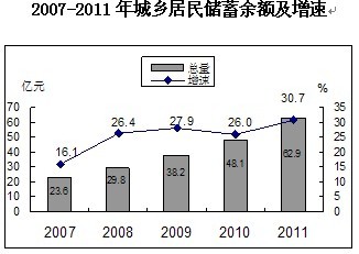 年末金融機(jī)構(gòu)存款余額119.97億元,比上年增長27.7%,其中城鄉(xiāng)居民儲(chǔ)蓄存款余額62.85億元,增長30.7%。金融機(jī)構(gòu)貸款余額74.82億元,增長14.7%,其中短期貸款18.3億元,增長34%, 中長期貸款56.52億元,增長10.7%。