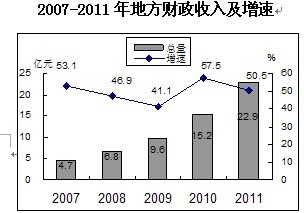 2011年,全區(qū)實(shí)現(xiàn)財(cái)政總收入37.76億元,比上年增長37.4%。實(shí)現(xiàn)地方財(cái)政收入22.85億元,增長50.5%,實(shí)現(xiàn)稅收收入8.83億元,其中增值稅和營業(yè)稅分別增長24.5%和49%。全年地方財(cái)政支出47.39億元,比上年增長34.5%,其中農(nóng)林水事務(wù)支出增長13.4%,教育支出增長27.1%,醫(yī)療衛(wèi)生支出增長44.8%,社會(huì)保障和就業(yè)支出增長21.6%,城鄉(xiāng)社區(qū)事務(wù)支出增長9.8%。