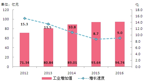 全年工業增加值94.74億元,比上年增長9%,占地區生產總值的43.3%,其中規模以上工業增加值91.74億元,增長9%。