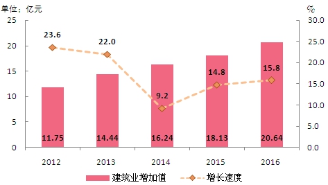 全年在地建筑項目個數708個。建筑業增加值20.64億元,比上年增長15.8%,占地區生產總值的9.4%。建筑業總產值89.15億元,增長4.4%。