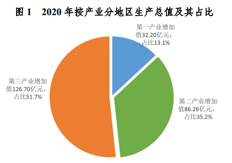 初步核算,全年地區生產總值245.16億元,比上年增長3.9%。按產業分,第一產業增加值32.20億元,增長4.9%;第二產業增加值86.26億元,增長2.6%;第三產業增加值126.70億元,增長4.5%。三次產業結構比為13.1∶35.2∶51.7。民營經濟增加值129.02億元,增長1.2%,占全區經濟總量的52.6%。