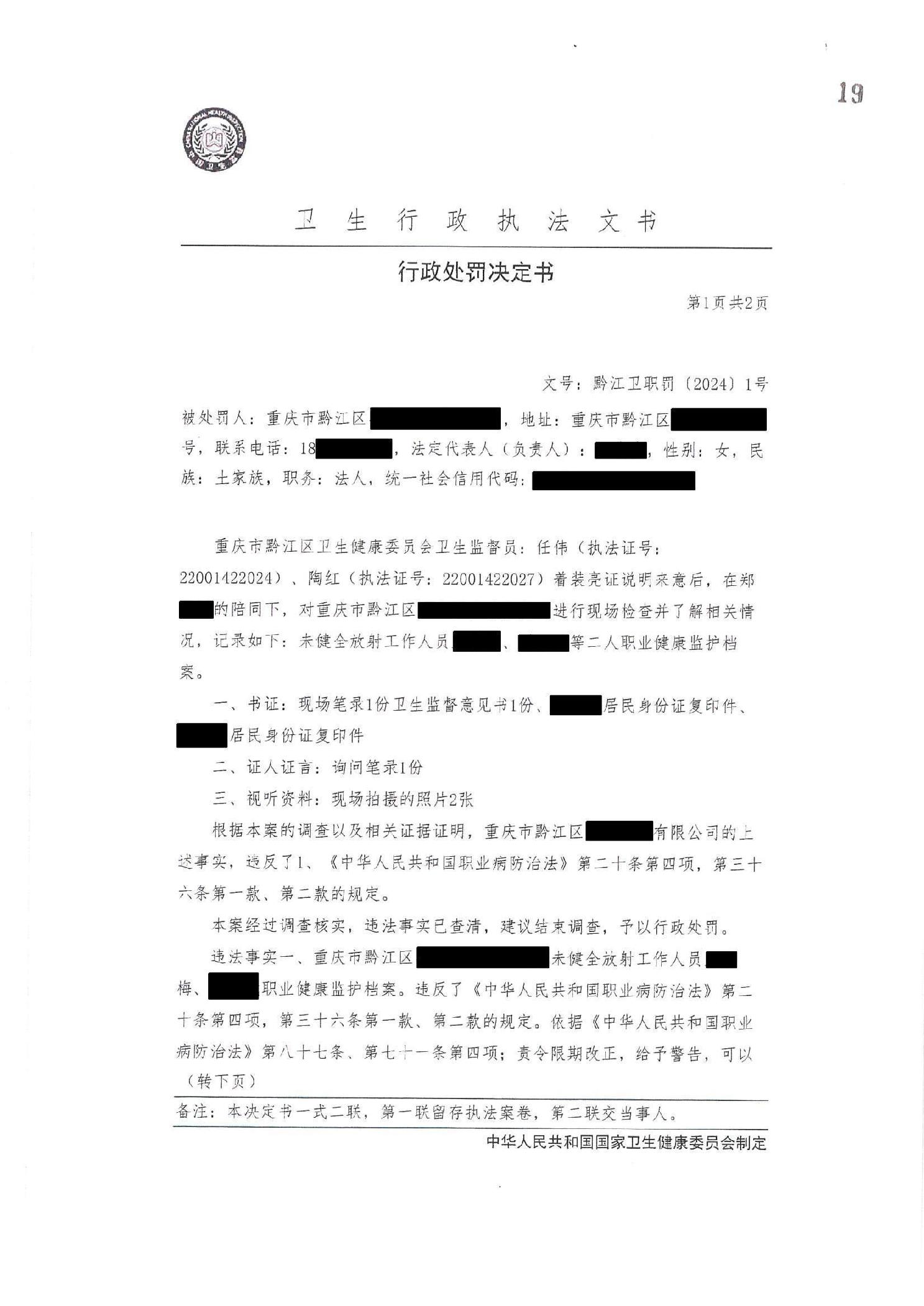行政處罰決定書(黔江衛(wèi)職罰〔2024〕1號)">