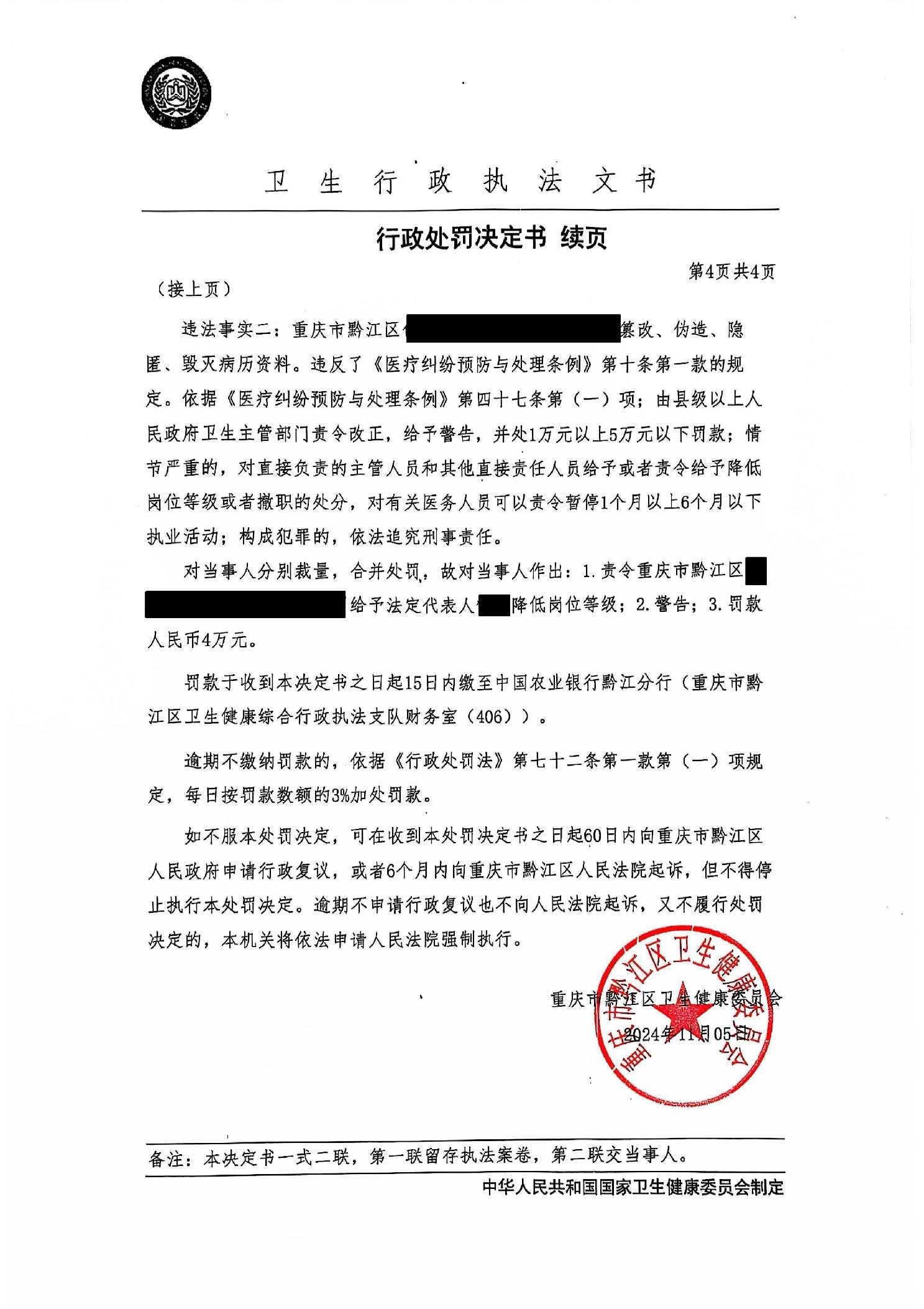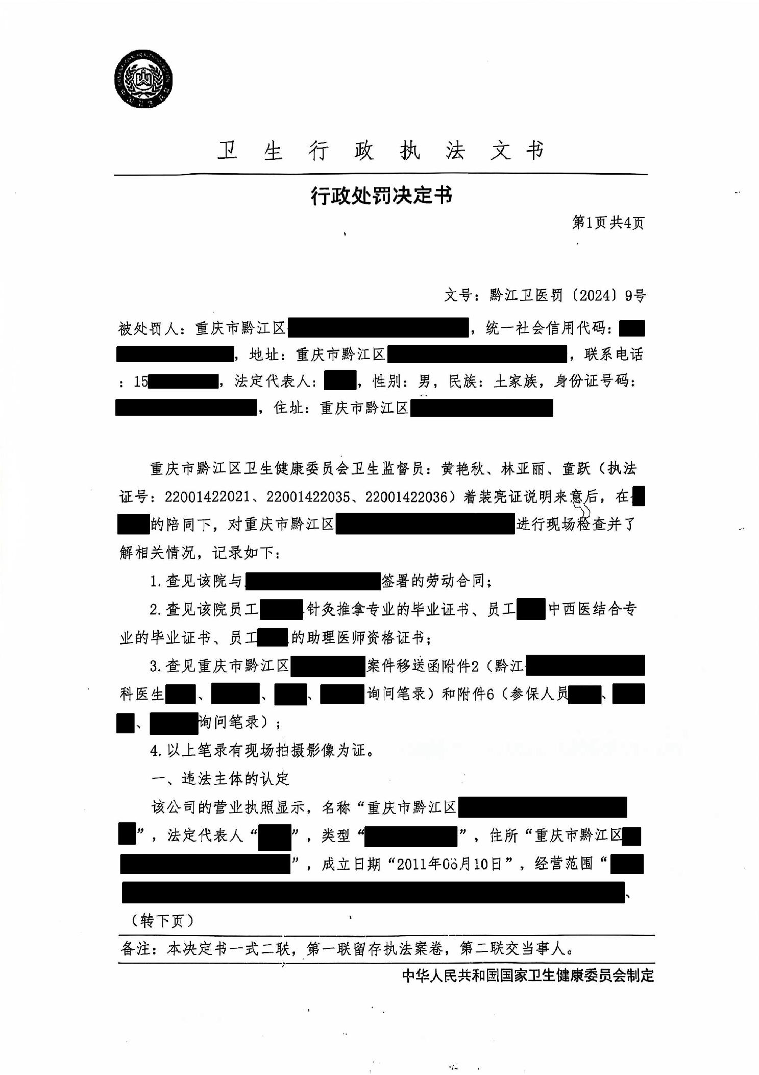 行政處罰決定書(黔江衛(wèi)醫(yī)罰〔2024〕9號)">