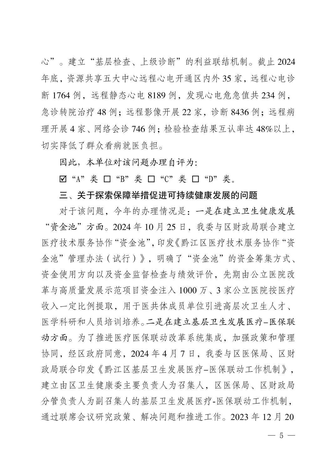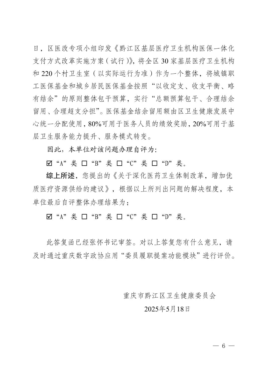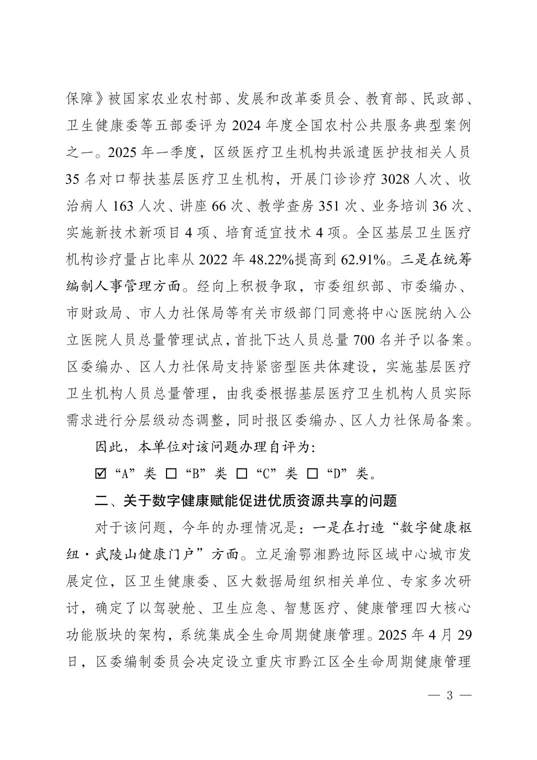 重慶市黔江區衛生健康委員會關于黔江區政協五屆四次會議提案第176號辦理情況的答復函