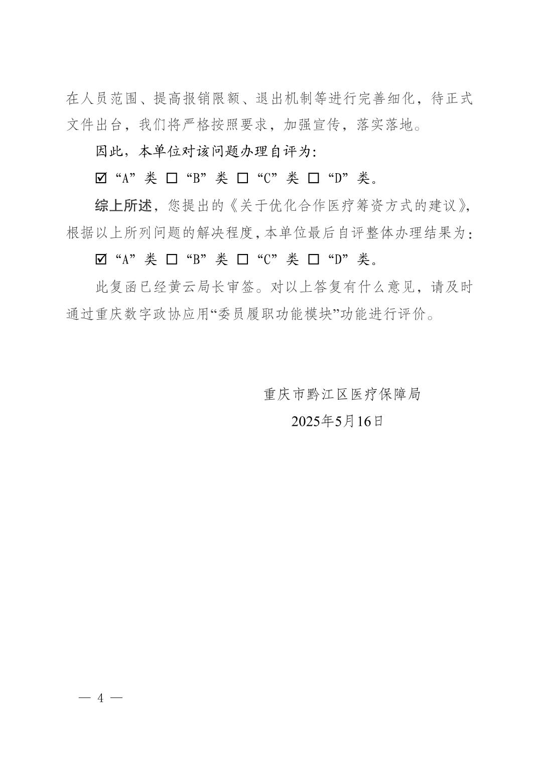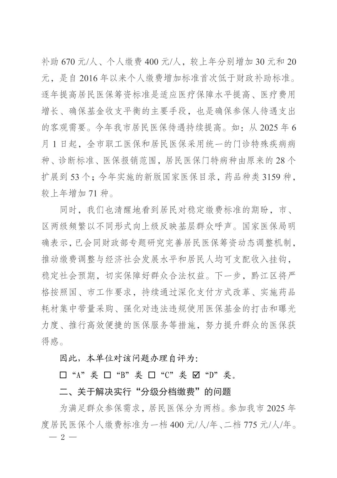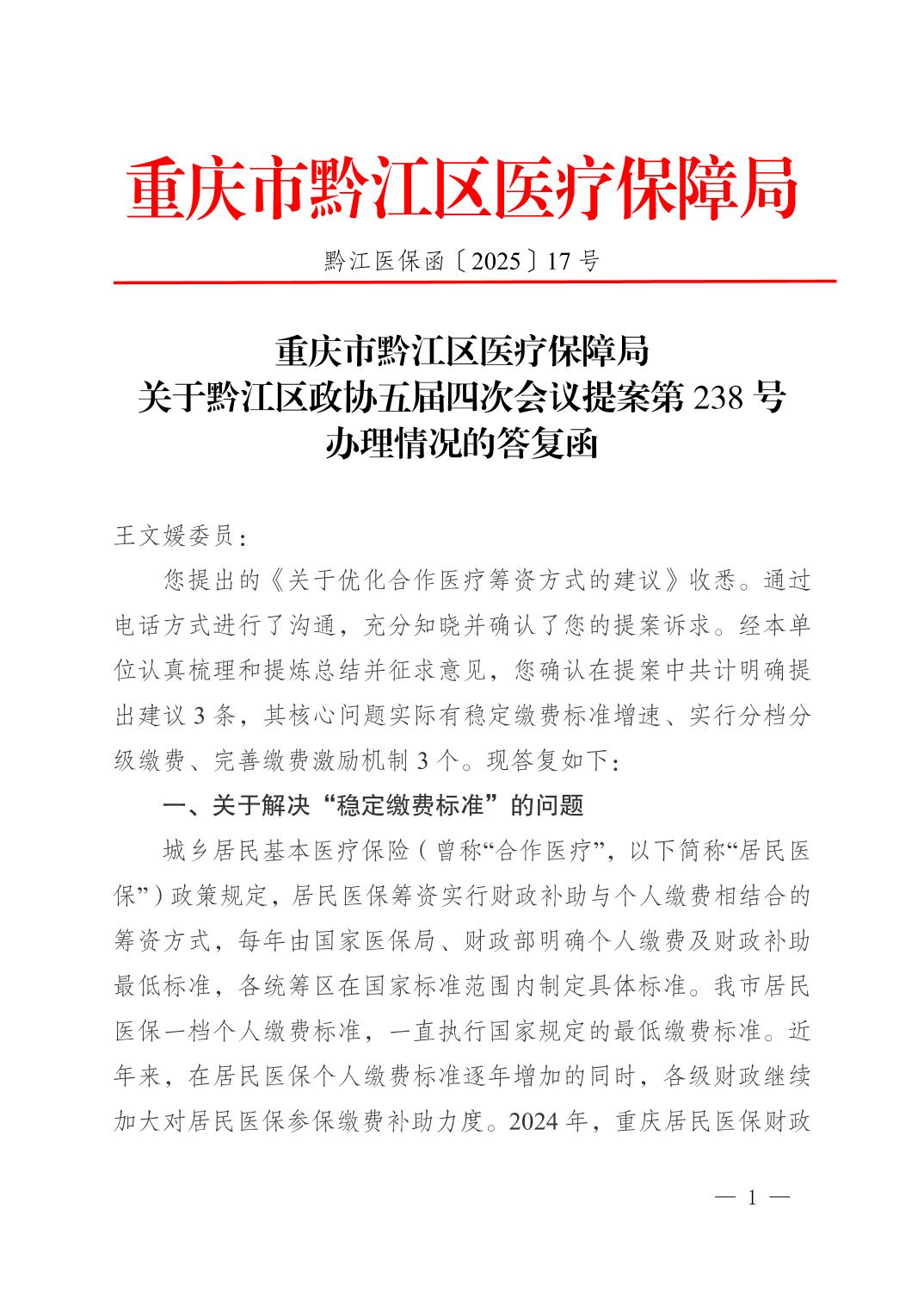 重慶市黔江區(qū)醫(yī)療保障局關(guān)于黔江區(qū)政協(xié)五屆四次會議提案第238號辦理情況的答復函