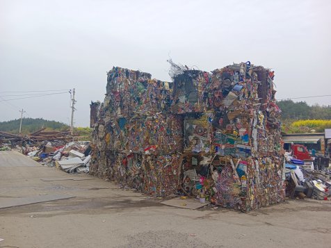 圖三:場(chǎng)內(nèi)堆放的壓縮成塊狀的廢舊品(每塊高度約1.1米)