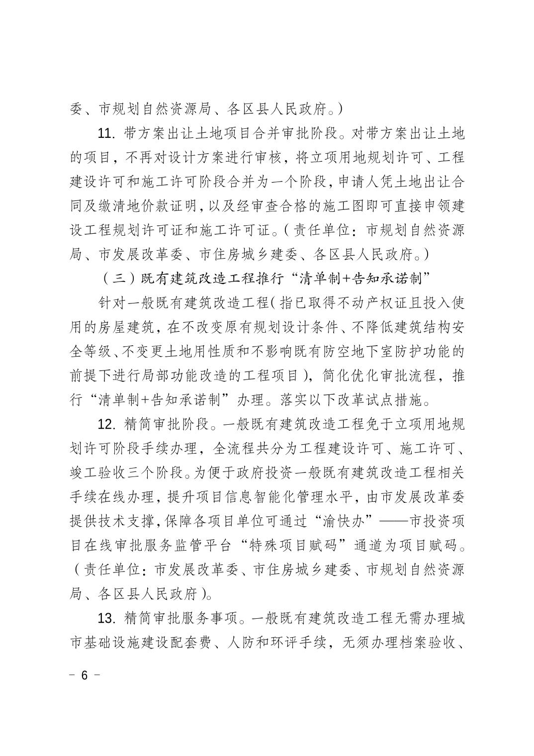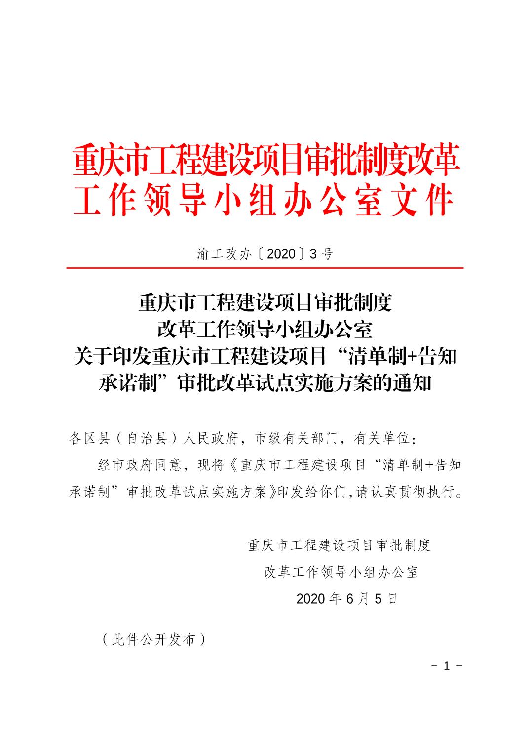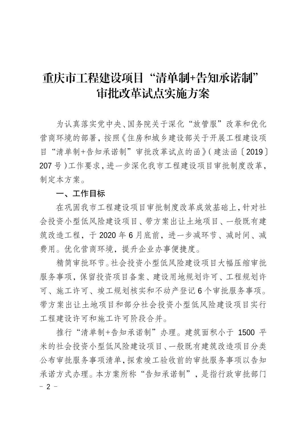 重慶市工程項目建設(shè)審批制度改革工作領(lǐng)導(dǎo)小組辦公室 關(guān)于印發(fā)重慶市工程建設(shè)項目“清單制+告知承諾制”審批改革試點實施方案的通知