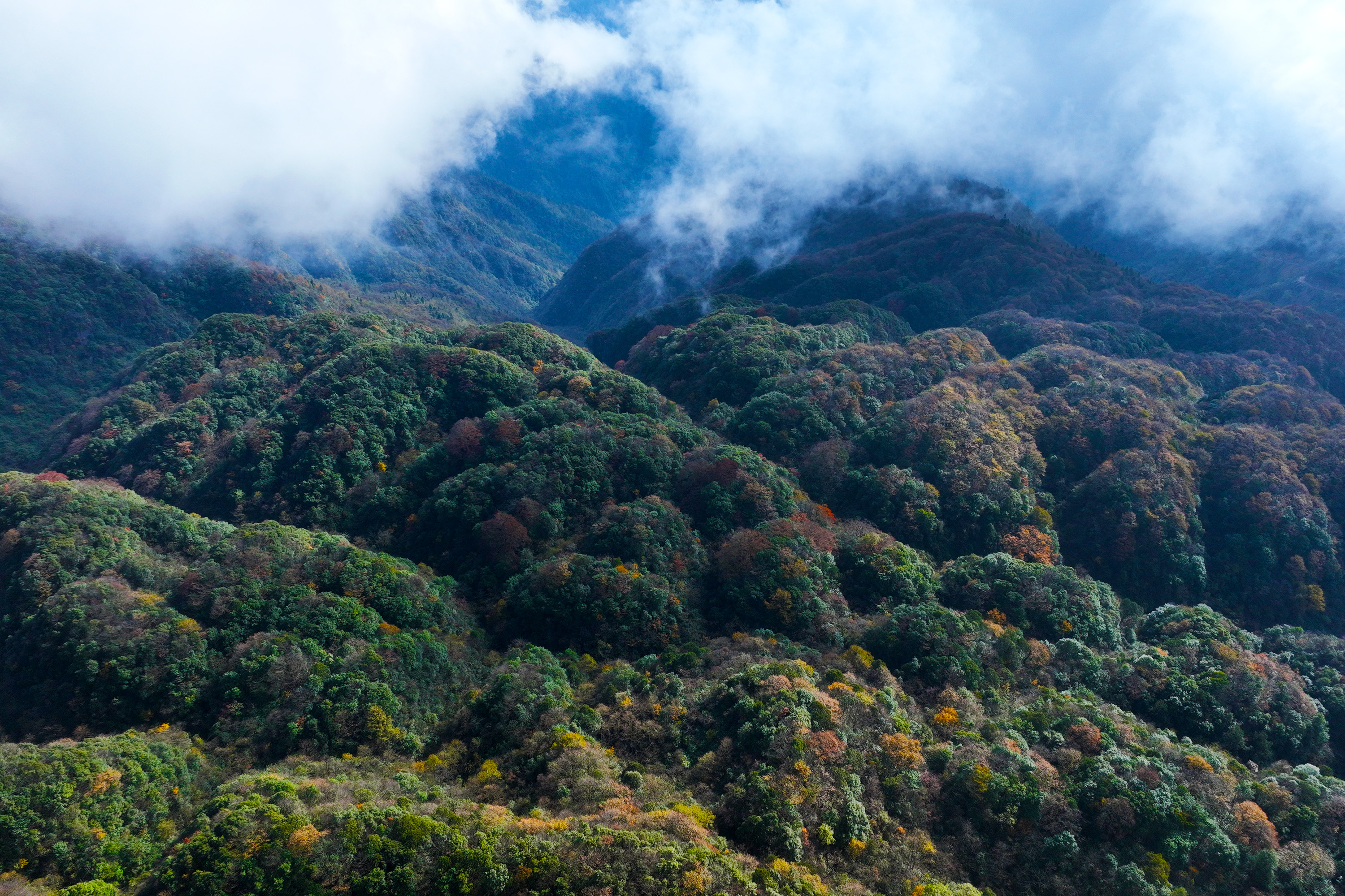 11月12日,黔江國家森林公園灰千梁子景區(qū)彩葉林,美不勝收(無人機照片)。特約攝影楊敏